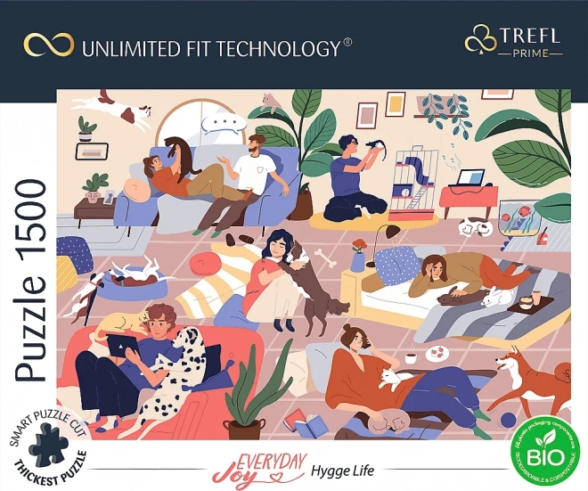 Enjoy calm, mindful puzzling with a laid-back life motif in TREFL quality. This 1500-piece puzzle uses UFT – Unlimited Fit Technology, letting you link multiple designs into a single collage. Premium blueboard cardboard, unique piece shapes, and a tight interlock for easy transport of the finished image are complemented by eco packaging without plastic wrap.