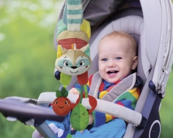 A light and super-soft friend that entertains your baby during walks and rest. Safe materials and attractive colors invite discovery.
