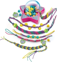 A set for making colorful friendship bracelets that are elegant and fashionable! The set includes a special tool for weaving bracelets using colored threads and beads. You can enrich your creations with lots of colorful beads! A playful activity you can enjoy with friends that guarantees fun.