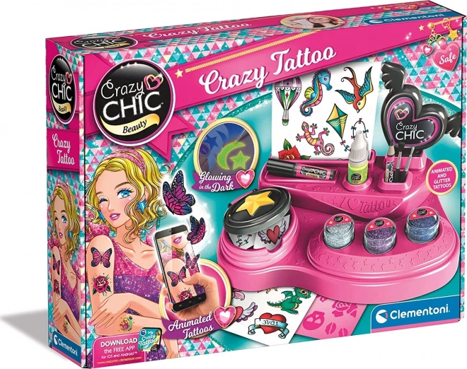 Create your own temporary tattoos with glitter, stencils, and a special glow body dye. The stylish CRAZY CHIC set includes a practical work desk and supports Augmented Reality (AR) in the Crazy Tattoo app – your designs come to life in magical 3D that you can photograph, edit, and share on social media.