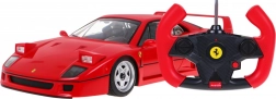 The licensed Rastar Ferrari F40 remote control car in 1:14 scale delights with faithful proportions, working front and rear lights and pop-up headlights. Thanks to the independent suspension and an ergonomic steering-wheel controller, it offers smooth forward/reverse driving and steering, while the injection-molded body highlights the iconic design.