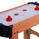 Enjoy dynamic air hockey at home. The compact table with a perforated surface creates an air cushion, allowing the puck to move quickly and smoothly with minimal friction. The wood-effect decor fits seamlessly into any interior.