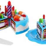 Six pieces joined by hook-and-loop can be cut with the included knife and decorated freely with fruit, toppings, and candles.