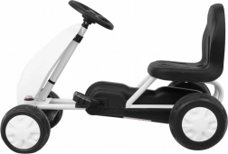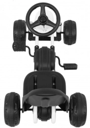 This compact pedal go-kart is designed for the youngest children. Thanks to its low weight of 3.8 kg, it’s easy to control, while the fully enclosed chain drive provides safety and smooth engagement. The rubber ring on the wheels dampens vibrations and increases grip on sidewalks and in the garden.
