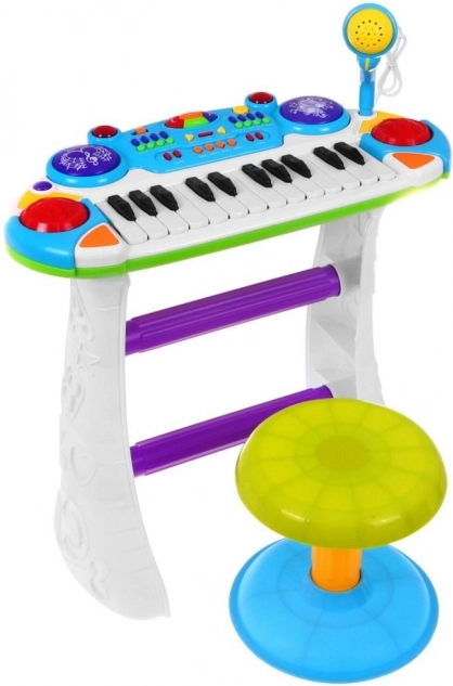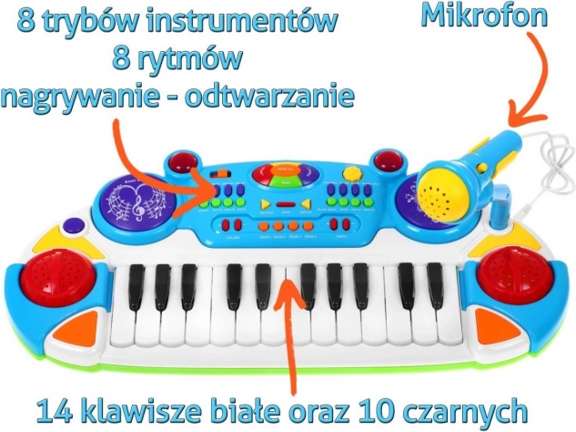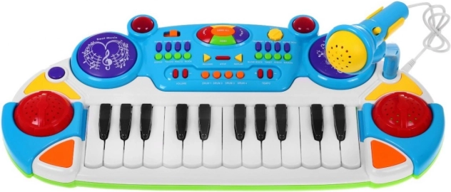 Blue Music Set with Keyboard and Microphone for Kids 3+ Lights and Sounds 2 Octaves