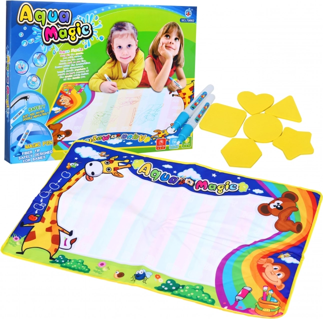 This set also includes a stencil with various shapes that children can trace, further enhancing the fun. The water mat is designed to help children develop logical thinking, shape and color recognition through play. Its safe and creativity-stimulating nature makes it an ideal tool for independent play.