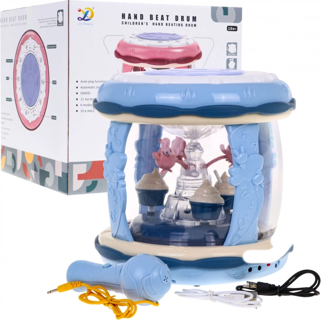 Interactive Drum with Microphone – Multifunctional Cube with Sounds, Lights, and Carousel (18m+)