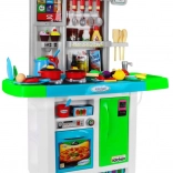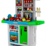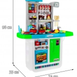 A large interactive kitchen for kids aged 3+ brings hours of creative fun. It features light-up burners with sound, a working water faucet, a touch panel with melodies and sounds, plus an opening oven and fridge. A rich set of accessories develops imagination and fine motor skills.