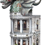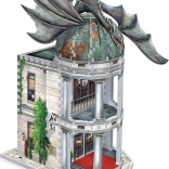 The kit includes a detailed 3D model of Gringotts Bank featuring a dragon at the dome's center. The structure has architectural elements like columns and windows, with ivy on the masonry.