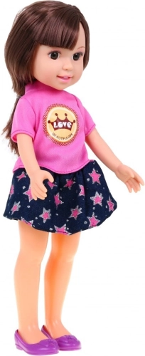 The set includes a dress, T-shirt, and skirt, so kids can change the doll’s look to suit their mood and develop a sense of style.