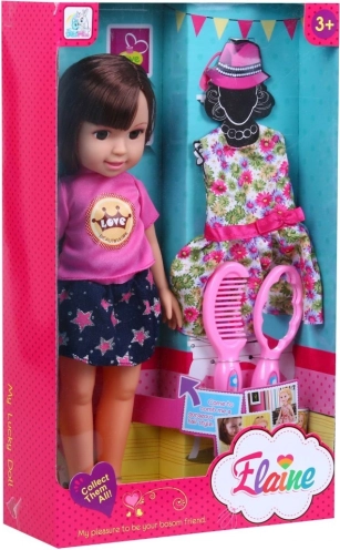 • Complete set: doll, dress, T-shirt, skirt, shoes, mirror, and comb