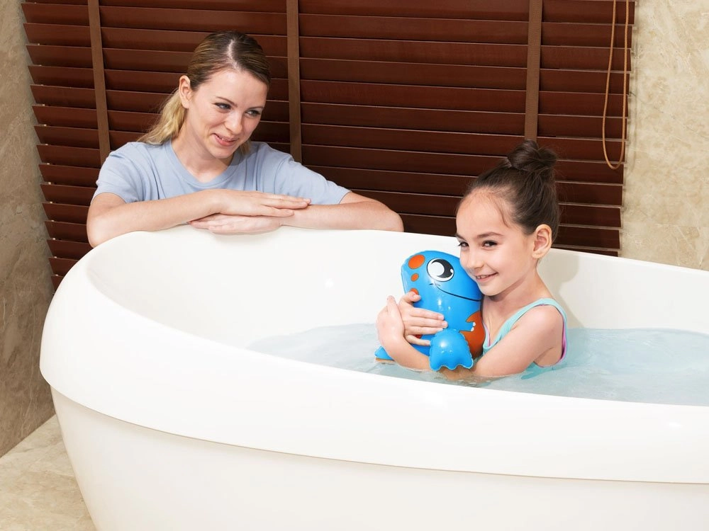 Thanks to its inflatable construction, the dinosaur floats safely on the surface and turns bath time into a fun game.