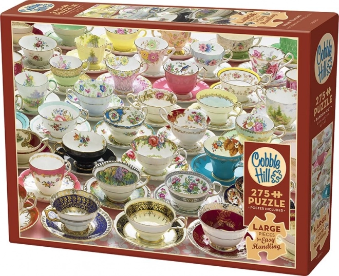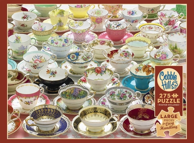 Puzzle COBBLE HILL More Cups XL 275 pieces is an ideal choice for anyone seeking comfortable yet engaging puzzling. The extra-large pieces of roughly 3 cm are easy to hold, reduce eye strain, and support fine motor skills. The non-standard piece shaping, which does not follow a typical grid, increases both enjoyment and satisfaction from assembly.