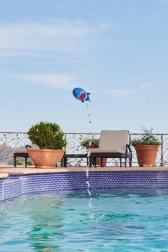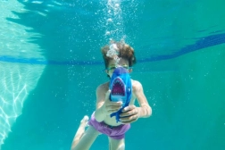 The Shark Rocket shoots up to 180 cm above the water from the pool. Hold the shark underwater, aim, and release it. Or submerge it in the pool, attach it to the bottom, wait 10 seconds, and it will launch itself straight into the air. Made from soft foam with a lightweight design. Recommended for children ages 5 and up.