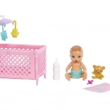 Discover the magic of caring for a baby with the Barbie Skipper Babysitter set. This adorable playset includes a Skipper doll, a baby with closing eyes, a crib with a mobile, and practical bedtime accessories – a bottle, pacifier, teddy bear, little book, and blanket. Kids can develop their imagination, emotional intelligence, and nurturing skills while playing babysitter.