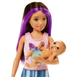 Skipper, with purple hair streaks and a stylish outfit, brings the vibe of Barbie movie adventures into play.