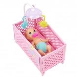 Includes a pink crib with a mobile, a soft blanket, a little book, and a tiny teddy bear – everything for calm bedtime routines and lots of play scenarios.