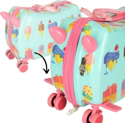 This children's cabin suitcase is an ideal companion for holidays, trips, and weekend visits. The playful ice cream motif catches the eye, and the durable plastic build stands up to everyday travel. Kids will love being able to sit on the case to rest, while parents will appreciate the practical layout and easy handling.