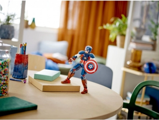 The LEGO Marvel Captain America figure brings the iconic Avengers hero into kids’ rooms. Thanks to joints at the shoulders, elbows, hips, and knees, the model can be dynamically posed to relive scenes from the Marvel films. Faithful details, including the legendary shield that attaches to the hand or back, ensure an authentic play and display experience.