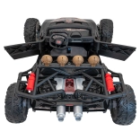 Specially designed eco-leather seats ensure comfort and safety with belts, while opening doors add a realistic touch. The car includes an advanced audio panel with MP3, AUX, USB, and Bluetooth for the best in-game sound experience.