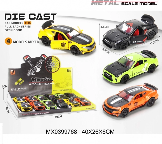 Discover a realistic metal model of a sports car in 1:36 scale. Thanks to its sturdy build and opening doors, the car feels authentic and fits perfectly in the hand. The pull-back feature ensures a speedy ride – just pull it back and let it go.