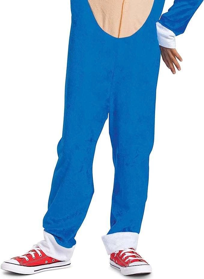 This blue kids’ SONIC costume is designed for comfort, easy dressing, and a faithful capture of the favorite character from games and animations. The hood with eyes, ears, and spikes, the beige belly panel, and white cuffs deliver an authentic look.