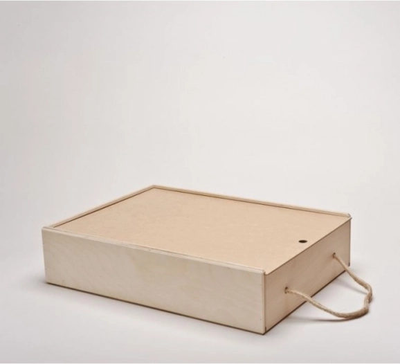 The entire set is practically packed in a wooden suitcase with a sliding lid for easy transportation.