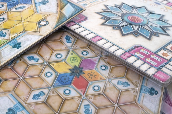 The set includes plastic overlays for the boards to prevent accidental shifts of tiles and markers while enhancing the game’s clarity and aesthetics. This expansion is ideal for players seeking more variability, strategic depth, and a smoother play experience.