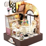 Create your own cozy patisserie with miniature tables, chairs, and a dessert display case. The kit arrives unassembled and includes a detailed manual and practical tools for easy assembly. The finished model looks like a realistic diorama, ideal for lovers of miniatures and stylish decor.