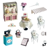 • Realistic details – mini display case with “desserts,” tables, chairs, and flowers