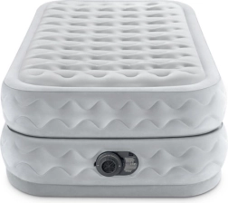 The comfortable Dura-Beam Twin air bed offers stable and cozy sleep thanks to fiber technology and a pleasant surface. Inflates quickly in 3 minutes, with a built-in 220–240 V electric pump and durable vinyl for easy use and long lifespan. Supports up to 136 kg and features an elevated height for easier getting in and out.