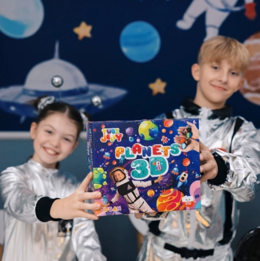 Introducing Tubi Jelly Planets - an amazing way to bring children experiences of space exploration and chemical experiments. The set includes everything needed: gel liquids, activator, and all necessary accessories for home experiments. Children can transform gel into finished planets ready for play.