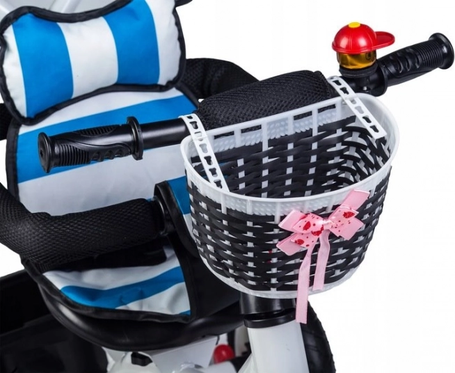 This tricycle from ECOTOYS is designed to provide your child with safety and comfort during play and walks. A soft backrest together with safety belts and protective bars ensures your child stays securely in place. The folding canopy protects children from adverse weather, and the rotating seat makes getting in and out easier.