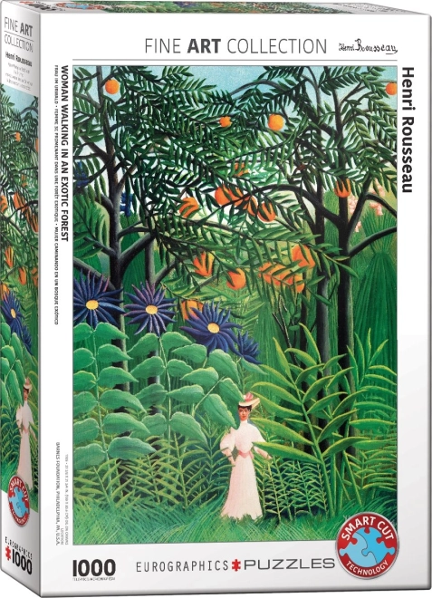 Enjoy a relaxing time with this high-quality 1,000-piece puzzle from EUROGRAPHICS. Thanks to the non-standard die-cut with original piece shapes, assembling offers higher difficulty and a fun challenge. Once completed, it forms an image of approximately 48 × 68 cm featuring a woman in an exotic forest.