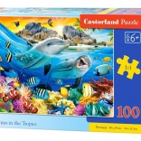 Enjoy assembling a beautiful scene of dolphins in a tropical paradise. This high-quality puzzle with 100 pieces offers both fun and learning—it develops concentration, patience, and perception of colors and shapes. When completed, it measures 40 × 29 cm and delights both kids and adults.