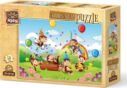 Enjoy a quality wooden puzzle with a cheerful monkey party theme. The pieces are die-cut from flexible African wood, making them durable and a great fit. This jigsaw is perfect for developing fine motor skills, logic, and patience.