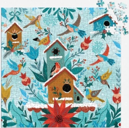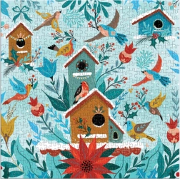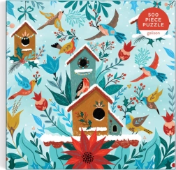 The Galison puzzle Winter Retreat transports you to a magical winter world full of birdhouses, robins, mistletoe, and poinsettias. This puzzle is made with special attention to quality and detail, ensuring faithful color and detail reproduction through its matte finish. Thanks to the smooth back surface, dust does not form when storing the assembled puzzle.