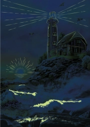 • Highly detailed design of sea scenery with raging waves and a lighthouse.