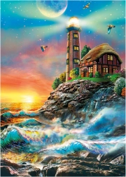 Enjoy a beautiful image of a lighthouse by the shore, which will immerse you in a world full of colors and imagination during assembly.