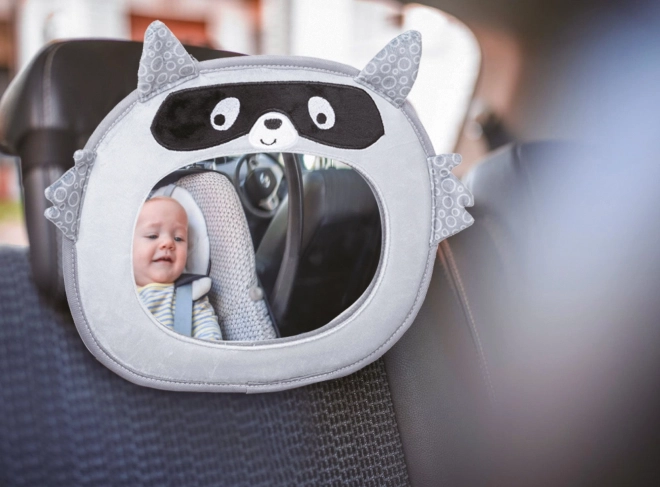 A practical and safe solution for all parents who want to keep their little one in sight even while on the road. The plush frame with a raccoon motif gives the car interior a friendly look and at the same time captures the child’s attention.