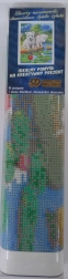 - Canvas with pre-printed design, set of colored diamonds, applicator pen, tray, wax, symbol legend
