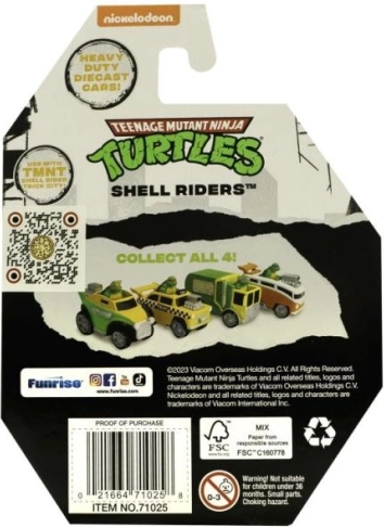 Step into a world of action entertainment with these metal cars inspired by the popular characters Teenage Mutant Ninja Turtles. Each car features an authentic character Leonardo, Michelangelo, Donatello, or Raphael, allowing children to immerse themselves in their favorite adventures. < /p>