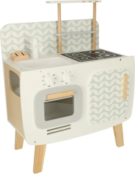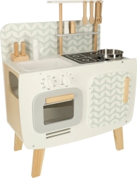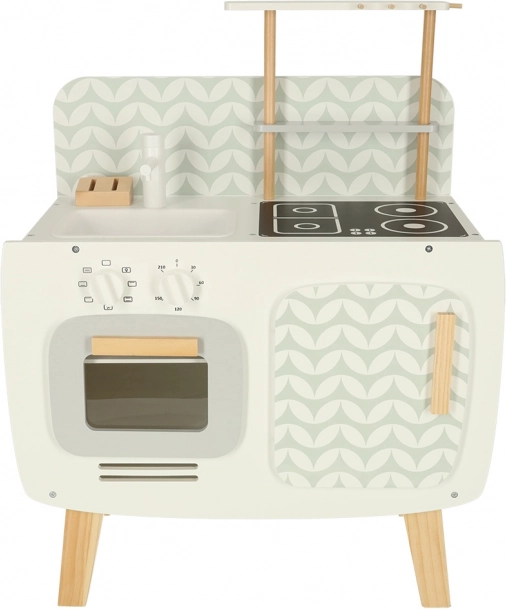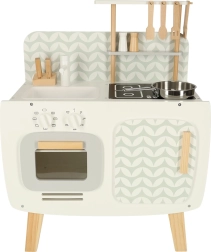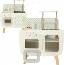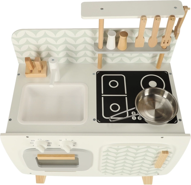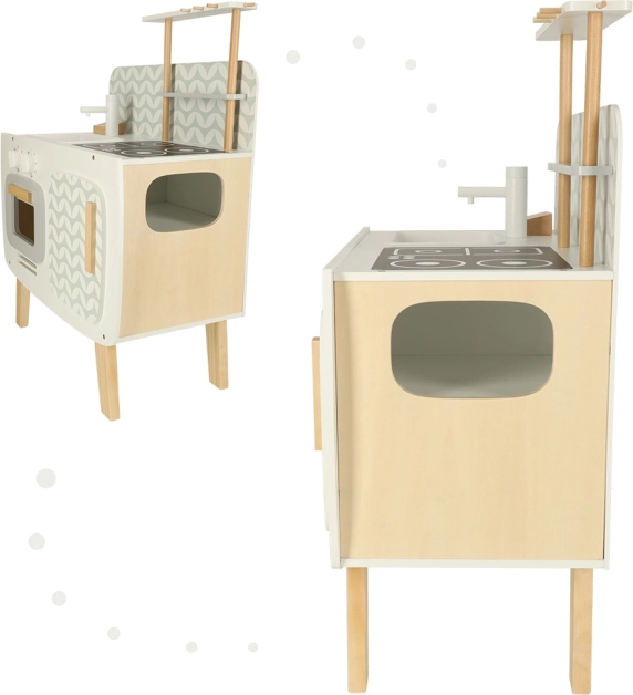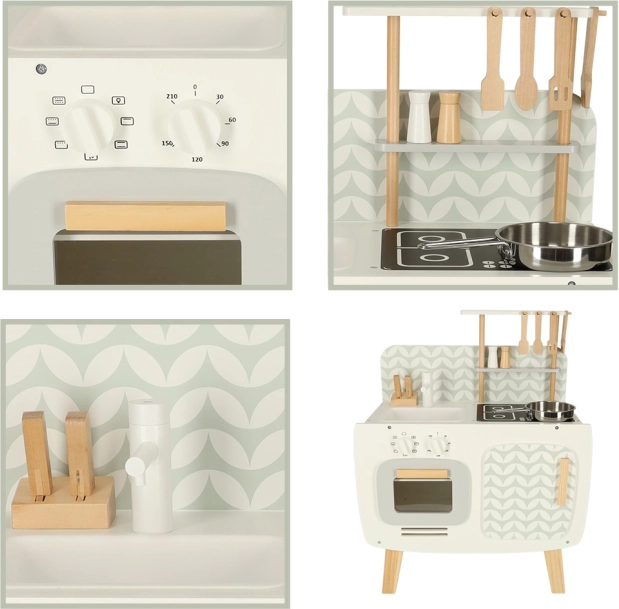 The wooden kitchen develops children's imagination and supports social and manual skills.