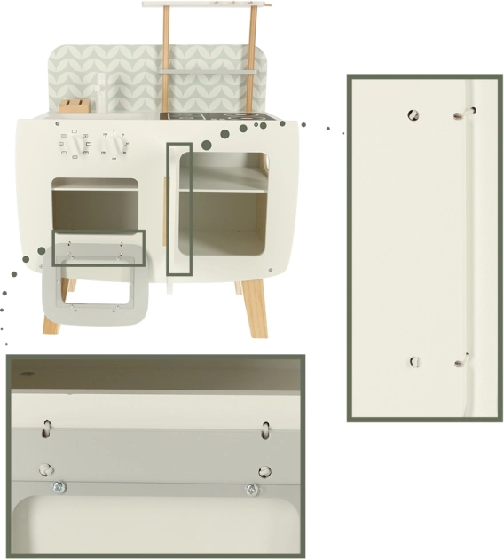The children's kitchen from Lulilo is a perfect miniature of a real kitchen. With dimensions suitable for little chefs, it offers an authentic experience and develops their interest in cooking.