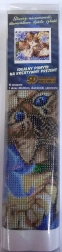 Package includes: canvas with a pre-printed image, pen for applying beads, tray for pouring beads, wax for sticking, and a set of colored beads.