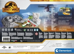 - 2 dinosaur figures (T. rex, Triceratops), plastic swamp, seeds, peat, cornstarch, spatula, measuring pipette, measuring cup, tray, dye, illustrated manual in Czech