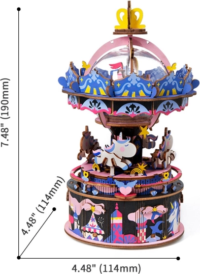 Robotime 3D Puzzle Merry-Go-Round is a unique carousel model that will delight any music box enthusiast. Assemble and enjoy the familiar melody combined with moving details.
