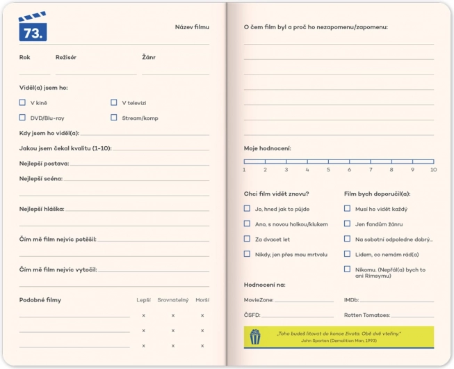 It’s great for jotting down ratings, favorite quotes, and tips for more films to watch. Thanks to the fun quotes and illustrations of movie heroes, it will inspire you to create and revisit your favorite moments.