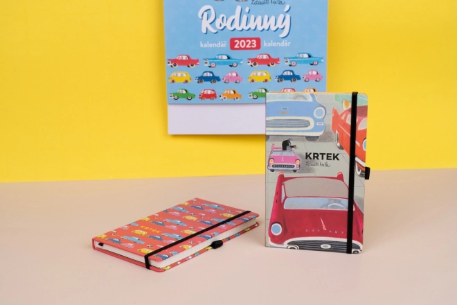 Elegant ruled notebook with the Little Mole and Little Car motif in hard covers is ideal for everyday notes, journaling, and work memos. It offers a practical elastic closure, a pen loop, and an inner pocket for small items. Inside you’ll find 172 dotted pages on yellow paper for clear and creative writing.