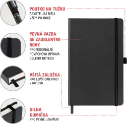 Thanks to its compact 13 × 21 cm size, it fits comfortably in a bag or backpack. Rounded corners and a pen loop make it a reliable companion for the office, school, and travel.